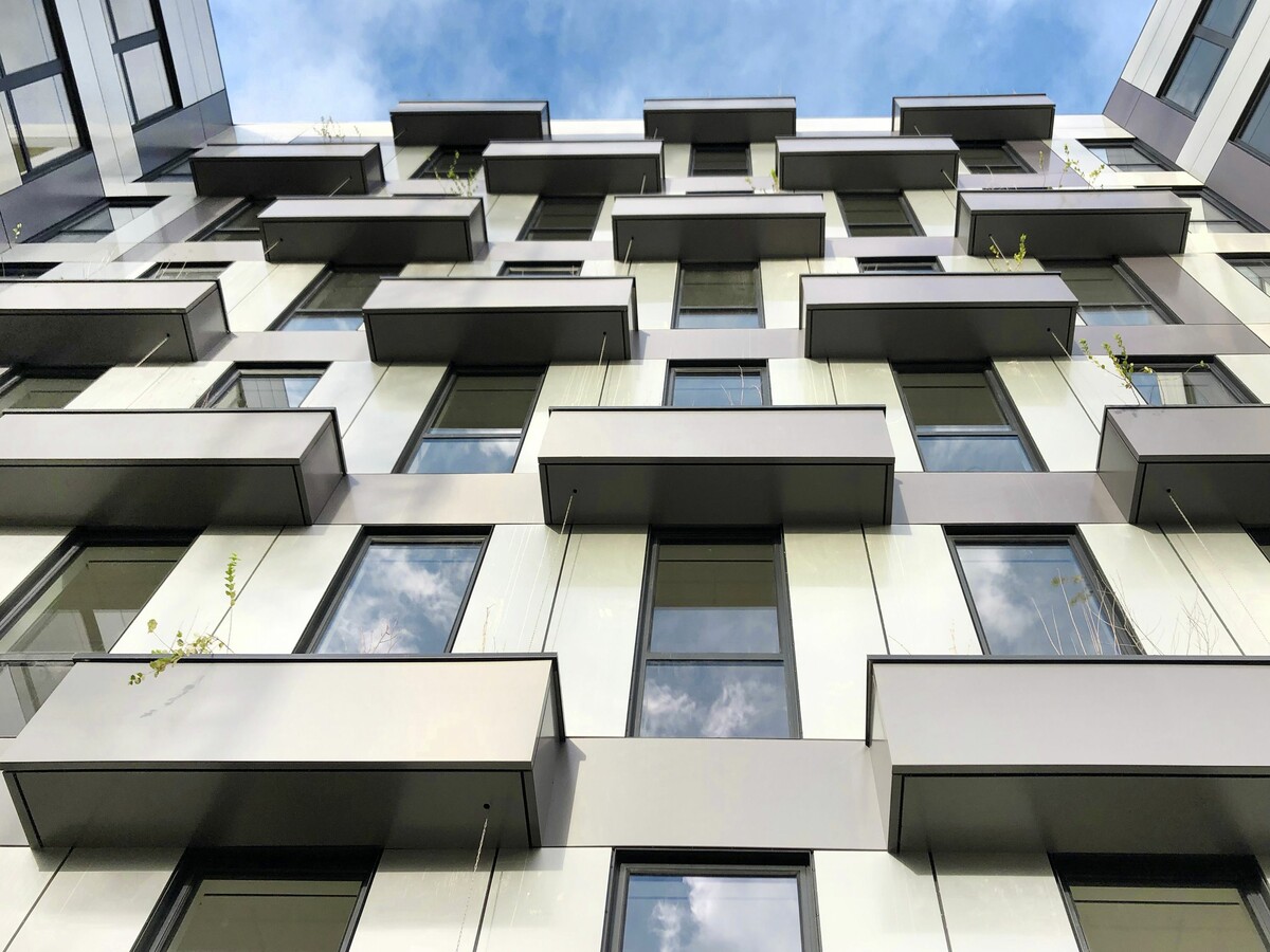 Les deux bâtiments dont l’architecture soignée est signée LOCI ANIMA sont certifiés BREEAM VERY GOOD (ou en cours de certification BREEAM VERY GOOD). S’inspirant du tissage textile, l’enveloppe en murs à ossature bois est le fruit d’une combinaison de deux vêtures en cassettes d’aluminium brossé et pré-laqué haute qualité Euramax formant une trame autour des fenêtres. Et pour le bien-être des utilisateurs, des terrasses accessibles en toiture et en étage favorisent les échanges et sont des prolongements des espaces de travail, tout comme les jardins au rez-de-chaussée.
